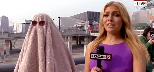 이하 테일러 스위프트 공연장에 담요를 뒤집어쓰고 나타난 팬. / 이하 WKRC-TV 트위터