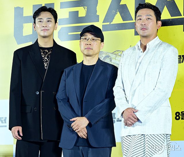 배우 하정우, 주지훈, 김성훈 감독이 4일 오전 서울 용산구 아이파크몰 CGV에서 열린 영화 '비공식작전' 제작보고회에 참석해 포토타임을 갖고 있다.
