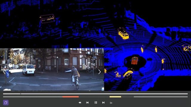 LiDAR 데이터 / 운행 차량 주변 상황 포인트 클라우드 데이터 가공 예시 화면