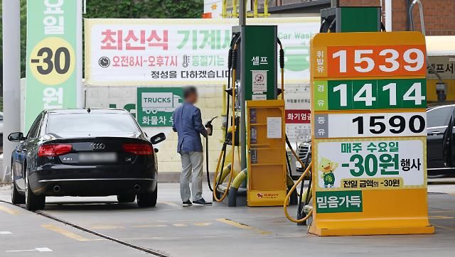 2日,首尔市内一家加油站,汽油和柴油售价同时下跌。【图片来源 韩联社】