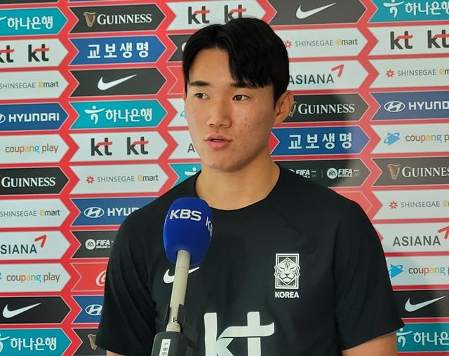 양현준이 지난 5월 16일 경기 파주시 파주국가대표트레이닝센터(NFC)에서 취재진과 인터뷰하고 있다.