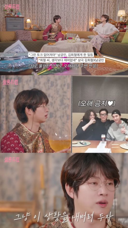 이와 관련 김희철은 “김희철이 남궁민에게 까이는 영상이다. 저도 보면서 웃었다”며 “형과 그때 친해져서 연락하게 됐는데 생각보다 사태가 컸던 것 같다. 사람들이 진짜로 (불화설로) 생각해서 형이 미안해하더라. 재밌게하면 된다고 했다. 형 결혼식도 갔고 따로 만난다”라고 해명했다.