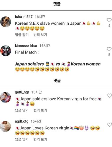 지난 2일(현지시간) 태국에서 열린 2023 아시아축구연맹(AFC) 17세 이하(U-17) 아시안컵에서 한국이 일본에 0-3으로 패한 뒤 AFC 측이 인스타그램에 올린 게시물을 보면 위안부 피해자를 조롱하는 댓글이 다수 달렸다.