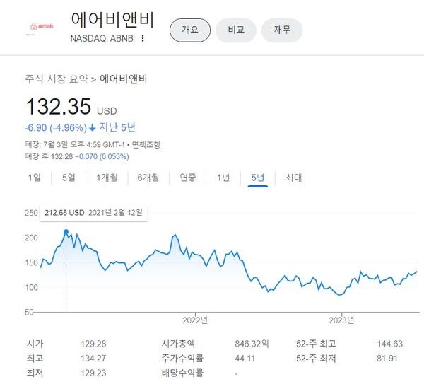 에어비앤비는 사용자가 전 세계 숙박 시설을 검색하고 예약할 수 있는 온라인 숙박 플랫폼입니다. 2008년에 설립됐으며 그 이후로 기하급수적인 성장을 경험했습니다. 코로나19 대유행으로 큰 위기를 겪는 등 다양한 문제에 직면했으나 현재 양호한 성장을 보이고 있습니다. 2020년 12월 10일 나스닥에 상장했습니다.