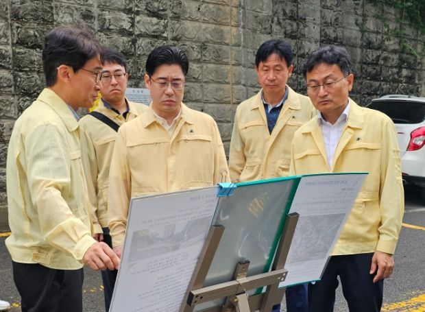 이어 오 부지사는 엄진섭 김포시 부시장과 차수판 설치를 완료한 사우동 반지하주택을 방문해 차수판 설치 상태를 점검했으며, 급경사지에서는 관리상태를 점검하고 집중호우 시 토사 유출로 인해 인근 주민들에게 피해가 발생하지 않도록 철저히 대비해 달라는 당부를 전했다.