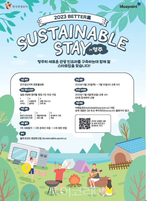 모집 스타트업 유형은 △지역의 유휴자원을 활용해 관광객에게 새로운 숙박경험을 제공하는 ‘숙박 서비스’ △탄소발자국을 줄이고 자원을 재활용해 환경에 미치는 영향을 최소화하는 ‘순환경제 솔루션’ △지역의 자원이나 사업과 연계해 경제를 활성화시키는 ‘로컬 비즈니스 연계’ 등이다.