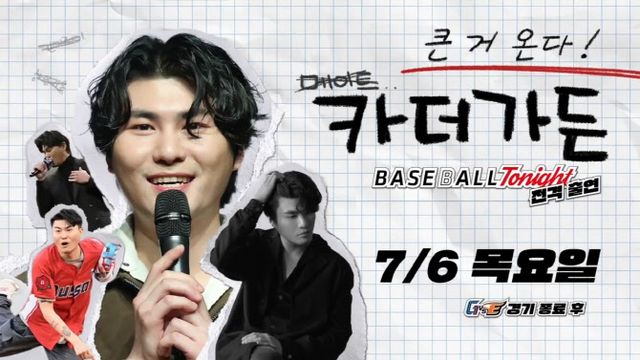야구 하이라이트 프로그램 ‘베이스볼 투나잇’은 6일 대전 이글스파크에서 열리는 롯데 자이언츠와 한화 이글스와 경기가 종료된 뒤 카더가든을 게스트로 초대해 특별 생방송을 진행한다.