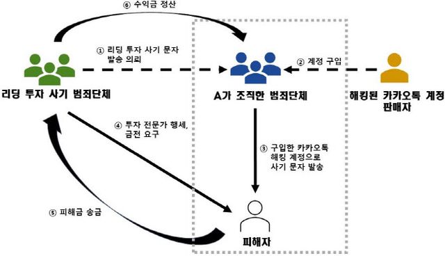 조직원들은 텔레그램에서 구입한 타인의 카카오톡 계정을 이용해 “매일 거래금의 2%를 수익금으로 돌려준다” “전문적 데이터분석” “40% 이상 손해볼 시 원금보장” “평균 수익률 250%” 보장 등 사기 문자를 살포해 피해자를 유인했다.