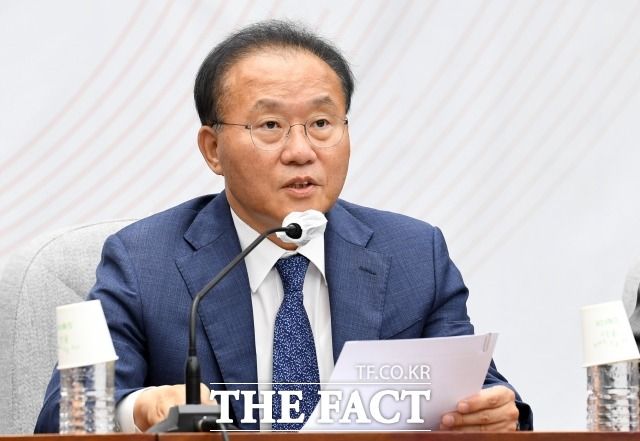 윤재옥 국민의힘 원내대표는 이날 국제원자력기구(IAEA) 최종 보고서 발표에도 더불어민주당은 이를 인정하지 않는다고 지적했다. /남용희 기자