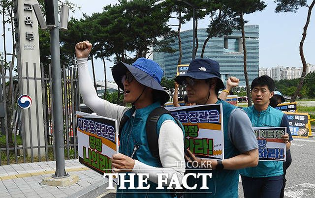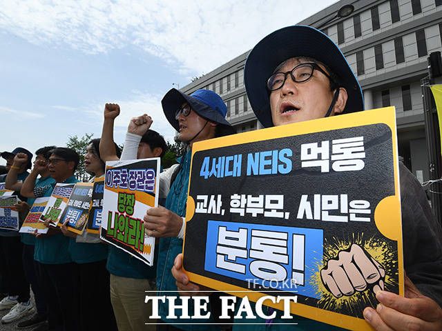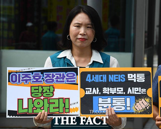 [더팩트ㅣ세종=이동률 기자] 전국교직원노동조합이 6일 오전 세종시 정부세종청사 교육부를 항의 방문해 교육행정 시스템 나이스(NEIS) 사태 해결을 촉구하고 있다.