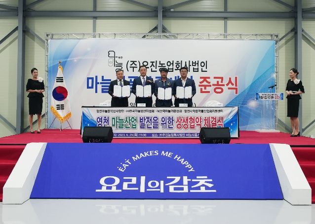 [파이낸셜경제=김윤정 기자] 영천시는 6월 29일 ㈜우진농업회사법인 마늘식품가공센터 준공식에서 영천마늘농촌융복합사업추진단, ㈔전국마늘생산자협회영천시지회, ㈔한국마늘가공협회, 영천시약용작물산업화지원센터 4개 기관·단체 간 마늘산업 발전을 위한 상생업무협약을 체결했다.