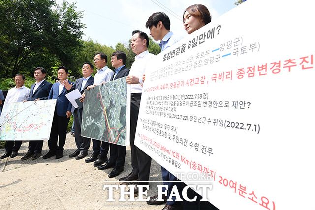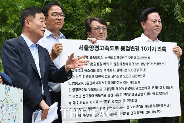 한편 원희룡 국토교통부 장관은 이날 국회에서 당정 협의회를 가진 뒤 소통관에서 "서울-양평 고속도로에 대해선 노선 검토뿐 아니라 도로개설사업 추진 자체를 이 시점에서 전면 중단하고 이 정부에서 추진됐던 모든 사항을 백지화하겠다"고 밝혔다.