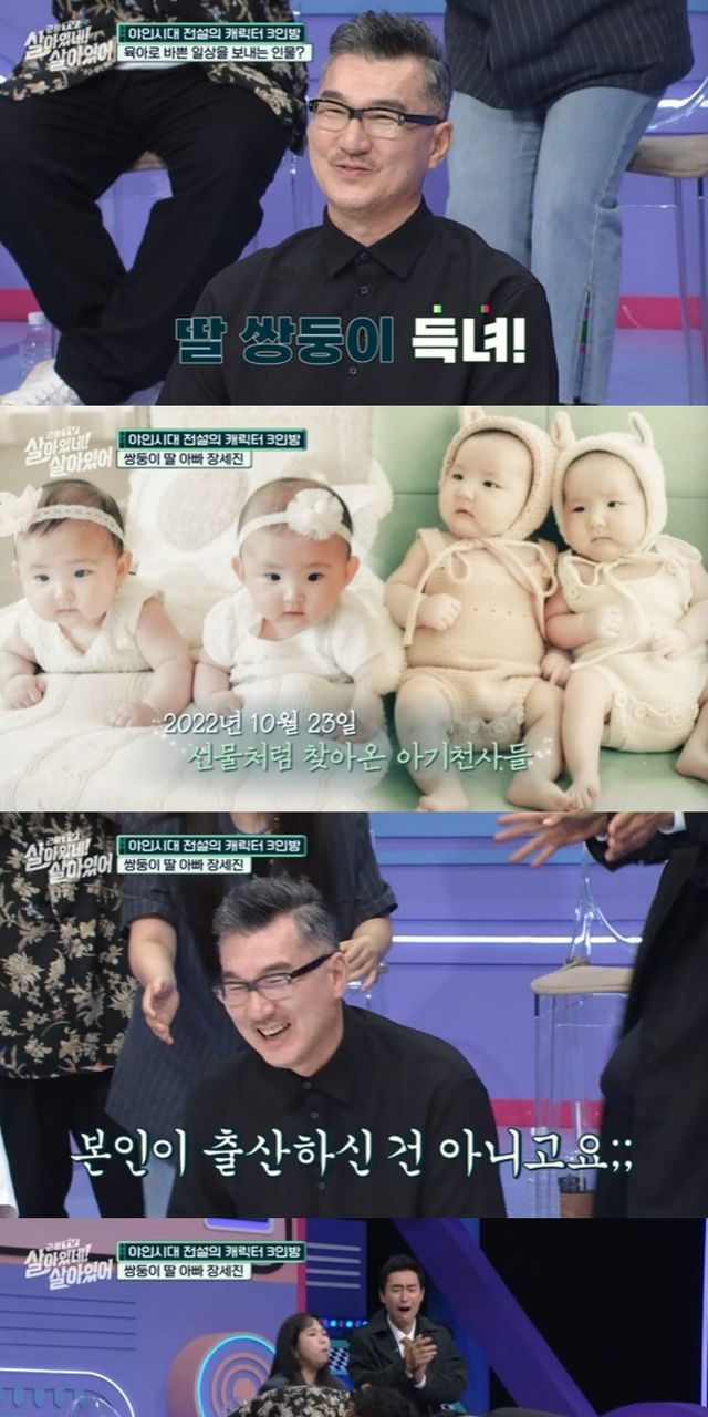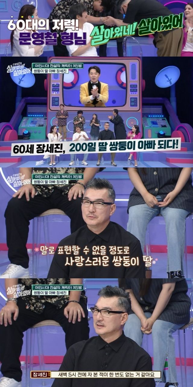 60세 환갑인 장세진은 "내 평생에 이루고 싶었던 꿈이었는데 최근에 작년 10월에 이 세상에서 가장 예쁜 딸 쌍둥이를 가졌다"라고 말해 박수를 받았다.