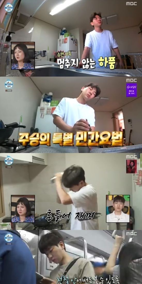 이날 이주승은 알람을 듣고 힘겹게 일어나더니 많이 부은 얼굴상태를 보여줘 걱정을 샀다. 이주승은 최근 오전 10시부터 밤 10시까지 진행되는 연극 연습에 중간중간 드라마 지방촬영까지 하느라 수면이 부족한 상태라고 했다.