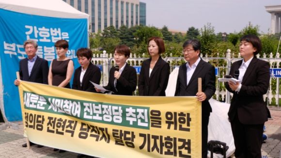 정호진 전 정의당 수석대변인, 위선희 전 대변인 등으로 구성된 전·현직 정의당 당직자들은 이날 국회에서 탈당 기자회견을 열고 "새로운 시민참여 진보정당을 추진하겠다"고 밝혔다. 정 전 대변인 측에 따르면 전·현직 대의원, 전국위원 등 주요 당직자 60여명이 탈당에 함께한다. 최근까지 대변인을 지낸 위 전 대변인은 이날 자신의 당 대변인 신분을 활용해 국회 내에서 기자회견을 진행하려 했으나 정의당 측에 의해 제지당했다.