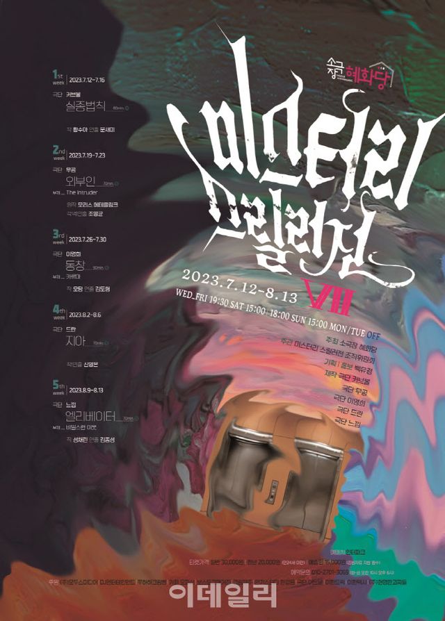 ◇‘2023 제7회 미스터리 스릴러전’ (7월 12일~8월 13일 소극장 혜화당 / 극단 커브볼·무공·이명희·드란·느낌)