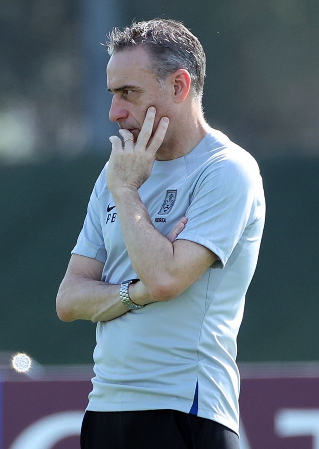 파울루 벤투 감독이 지난해 12월 4일(현지 시각) 카타르 도하의 알에글라 훈련장에서 선수들을 바라보고 있다