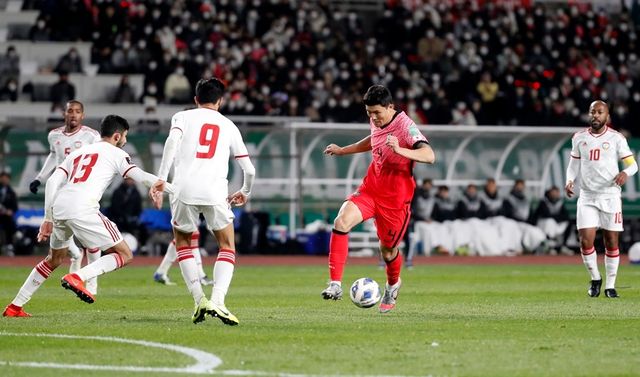 김민재가 2021년 11월 11일 경기도 고양시 고양종합운동장에서 열린 2022 국제축구연맹(FIFA) 카타르 월드컵 최종예선 대한민국과 아랍에미리트(UAE)의 경기에서 드리블하고 있다. / 뉴스1