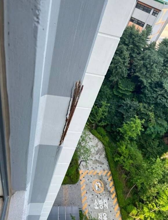 이날 공개된 사진에는 외벽을 뚫고 나온 녹슨 철근 다발이 담겨 있었고, 내용에는 '입주민이 직접 찍은 사진'이라고 적혀있었다.