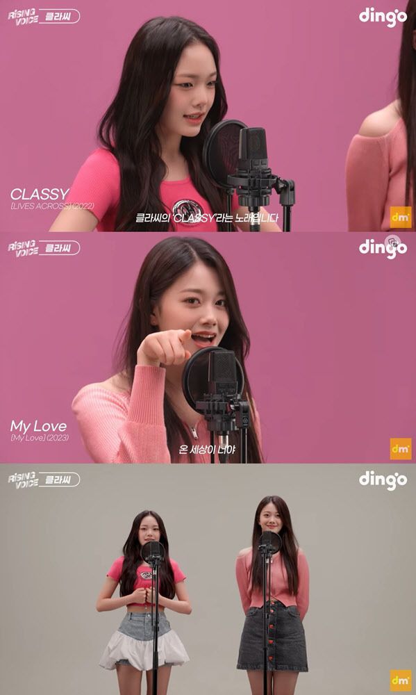 딩고 뮤직은 지난 7일 오후 7시 공식 유튜브 채널을 통해 ‘라이징보이스’ 여자 아이돌 편을 공개했다. 해당 영상에서 클라씨 멤버 지민과 보은이 처음으로 딩고 뮤직에 출연해 팬들을 깜짝 놀라게 만들었다.