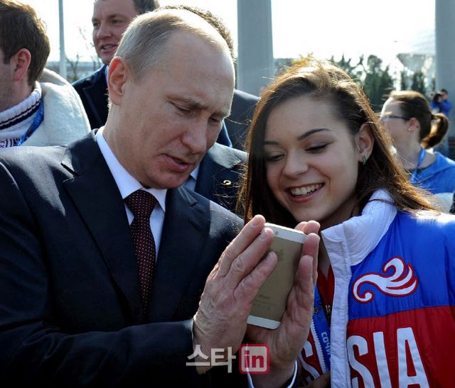 2014 소치올림픽 이후 블라디미르 푸틴 러시아 대통령과 함께 한 아델리나 소트니코바. 사진=AFPBBNews