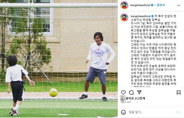 이강인은 그가 눈감던 날 인스타그램을 통해 "제 축구 인생의 첫 스승님이신 유상철 감독님. 제 나이 7살 축구 선수라는 꿈만 가지고 마냥 천진했던 시절, 슛돌이라는 프로그램을 통해 유상철 감독님을 처음 만나게 됐고 감독님은 제게 처음으로 축구의 재미를 알려주신 감사한 분이셨다"라고 추모글을 올렸다.