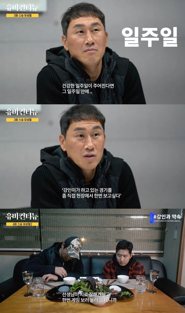 고 유상철의 이야기를 담은 유튜브 다큐 '유비컨티뉴'에서 그는 '건강한 1주일이 주어진다면?'이라는 제작진에 질문에 "강인이가 하고 있는 경기를 직접 현장에서 보고 싶다는 생각을 한 적 있다. 시간이 된다면, 그 1주일이 된다면"이라고 말하기도 했다. 그러나 그는 이 약속을 지키지 못하고 2021년 췌장암으로 세상을 떠났다.