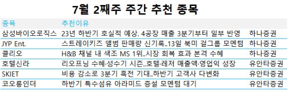 9일 금융투자업계에 따르면 하나증권은 삼성바이오로직스, JYP Ent., 클리오를 추천주로 선정했다.