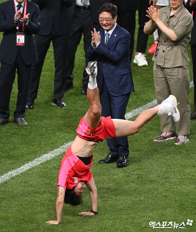 이에 대해 "이금민을 안쪽으로 들어가게하기 위한 것이었다"고 밝힌 벨 감독은 "하프타임에 지소연, 이금민 선수에게 '너희가 오늘 경기를, 팀을 이끌어가야 한다'고 강조했다"면서 "경험 많은 최고의 선수들이다. 이 선수들이 잘 이끌어준 덕분에 승리를 가져왔다"고 칭찬했다.
