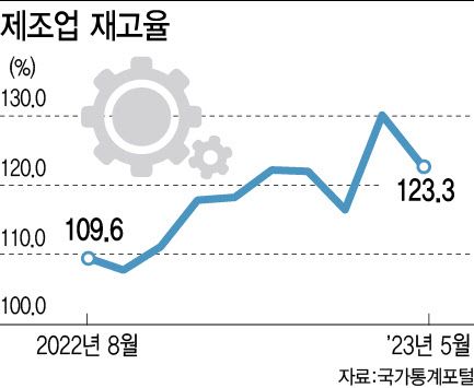 KDI가 경기 저점으로 판단한 것은 반도체 등 제조업에서 조금씩 부진에서 벗어나고 있는 지표가 포착됐기 때문이다. 통계청의 ‘5월 산업활동동향’에 따르면 제조업 평균가동률은 72.9%로 전월대비 2.0%포인트 상승했고, 같은 기간 재고율은 130.1%에서 123.3%로 낮아졌다. 제조업 재고는 전월대비 0.6% 증가했으나, 출하가 6.1% 늘어 재고율(재고/출하비율)이 낮아졌다.