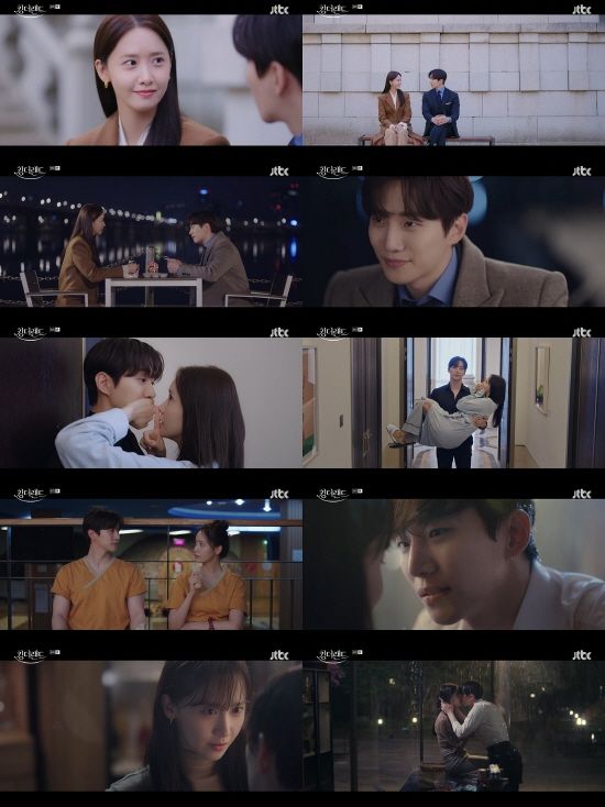 9일 방송한 JTBC 토일드라마 ‘킹더랜드’에서는 달콤한 키스로 서로의 마음을 확인하는 구원(이준호 분)과 천사랑(임윤아)의 모습으로 주말 밤을 로맨틱하게 물들였다.