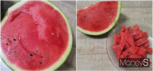 그러면서 "수박의 검은 줄무늬가 흐릿하고 굵기가 불규칙한 것은 선택하지 않는 게 좋다"며 "노란 얼룩과 마찬가지로 햇빛을 잘 받지 못한 수박에서 나타나는 특징"이라고 설명했다.