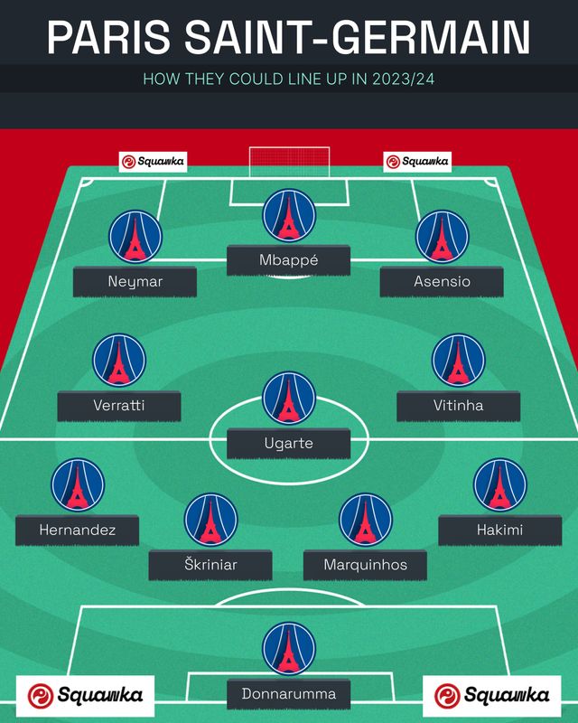 유럽 축구 통계 사이트 스쿼카는 10일(한국시간) 다음 2023/24시즌을 대비해 대대적인 선수 보강을 진행 중인 PSG의 베스트 일레븐을 예측했다.