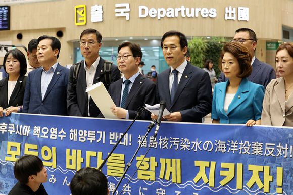김승남·박범계·안민석·양이원영·위성곤·유정주·윤재갑·이용빈·주철현 의원으로 구성된 민주당 '후쿠시마 핵오염수 해양투기 저지 대한민국 국회의원단'은 10일 김포공항에서 일본으로 출국했다. 의원단에는 자당 출신 윤미향·양정숙 의원도 합류했으며 당 농어민위원회, 어민단체 대표들도 함께했다. 이들은 이날부터 2박3일 일정으로 일본 현지에서 후쿠시마 원전 오염수 해양투기 반대활동을 전개할 예정이다.