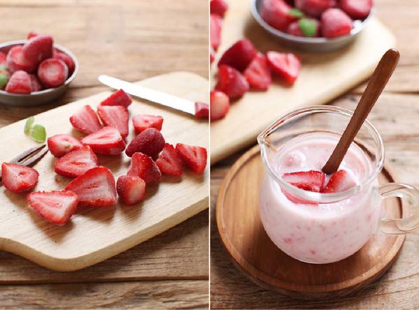 딸기청과 우유만 있으면 가능하다. 준비된 잔에 딸기청 두 큰 술을 넣고 얼음을 넣는다. 이후 우유를 채운다. 이때 프랑스 멸균우유 '에쉬레우유'를 넣으면 더욱 진하고 고급스러운 맛을 느낄 수 있다. 이외에도 딸기 빙수, 딸기 스무디, 딸기 요거트 등.. 다양한 레시피로 활용할 수 있다. (바로가기)