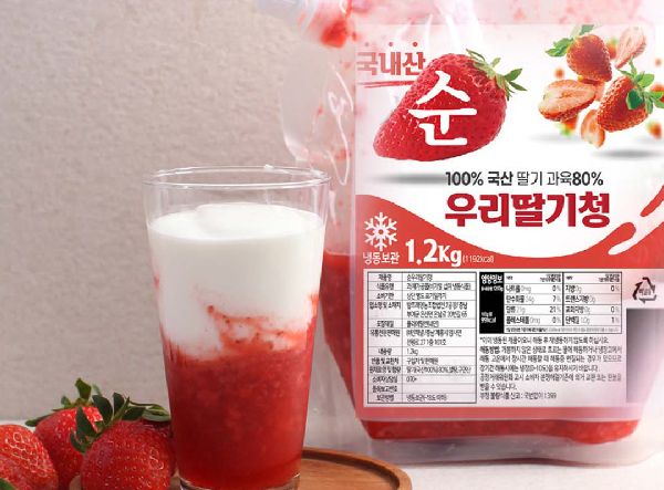 바로 100% 국산 딸기로 만든 '순 우리 딸기청'이다. 딸기청에 간단하게 우유나 탄산수만 넣어주면 평소 카페에서 먹던 딸기 음료를 뚝딱 만들 수 있다. (1.2kg 대용량 딸기청은 택샵에서 오는 20일까지 단 일주일간 9,900원 특가 이벤트를 진행한다.) (바로가기)