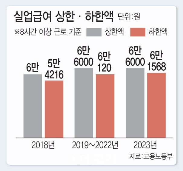 10일 이데일리의 취재를 종합하면 고용노동부는 고용보험제도개선TF를 통해 실업급여의 하한액을 평균임금의 60%로 조정하는 안을 검토하고 있다. 실업급여는 평균임금의 60%로 산출된다. 하지만 평균임금의 60%로 산출한 금액이 최저임금의 80%로 계산되는 실업급여 하한선에 미치지 못하면 ‘최저구직급여액’(실업급여 하한액)이 지급된다.