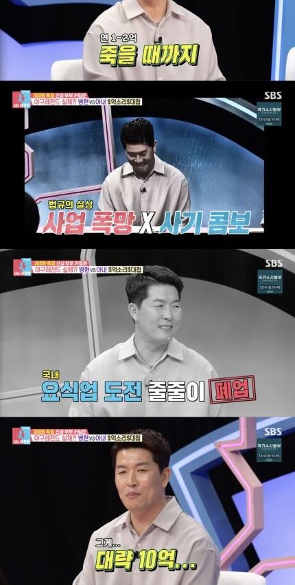 특히 김병헌은 현재 요식업계 CEO이기도 하다. 서장훈은 "사업폭망에 사기까지 당해 파산 직전이라더라"고 걱정, 실제 그는 "국내 요식업 도전했는데 하는 것마다 줄줄이 폐업했다"고 했다. 사기당한 이유에 대해선  "가까운 지인과 매니저들에게 좀 사기 당했다 대략 10억 넘는 것 같다"고 해 모두 안타깝게 했다.