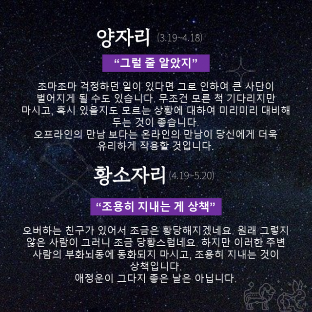 Δ 황소자리 : 조용히 지내는 것이 상책…