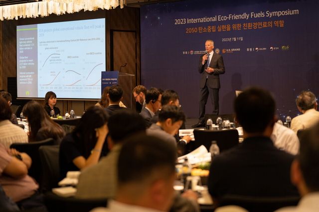 11일 한국자동차기자협회, 주한미국대사관, 미국곡물협회는 ‘2050 탄소중립 실현을 위한 친환경연료의 역할’을 주제로 서울 종로구 포시즌스호텔 서울 누리볼룸에서 ‘2023 친환경연료 국제 심포지엄’을 개최했다. 세계 각국의 친환경연료 정책 동향과 한국의 현황을 살펴보고, 수송분야에서의 탄소 저감을 위해 우리 실정에 맞는 현실적인 정책 대안과 해법을 제시하기 위한 자리다.