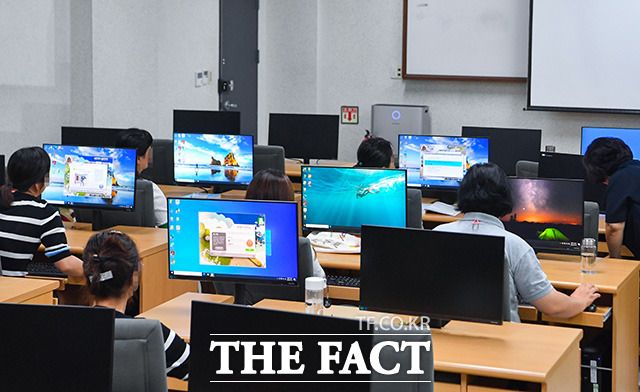 북한 이탈주민들의 사회정착을 지원하는 통일부 소속기관인 하나원이 개원 24주년을 맞은 가운데 입소자들이 전산교육을 받고 있다. /사진공동취재단