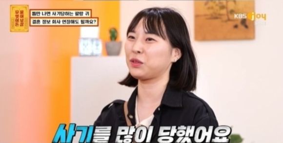 지난 10일 방송된 KBS JOY '무엇이든 물어보살'에는 틈만 나면 사기를 당한다는 '팔랑 귀' 고민녀가 등장해 고민을 나눴다. 그는 30살 골프 캐디로, 과거 당했던 사기 경험담을 털어놨다.