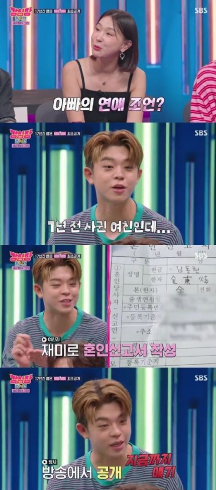이지혜는 "김구라씨가 아들 사랑이 참 지극하다, 휴대폰 배경화면이 그리 씨 어린시절 사진이다" 라고 말했다. 그리는 "지금은 아버지가 잠금화면은 동생 사진, 배경화면은 제 사진을 해두셨다. 그걸 보고 감동받았었다" 고 털어놨다. 이후 이지혜는 "예전에 사귀던 여자친구랑 혼인신고 한다고 혼인신고서 들고 다니지 않았냐" 며 이야기를 꺼냈다.