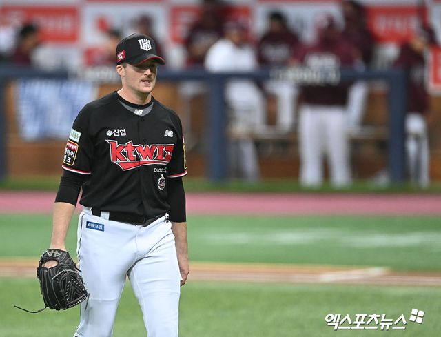 (엑스포츠뉴스 고척, 유준상 기자) 전반기에만 무려 9승을 수확한 웨스 벤자민은 KT 위즈 선발진 내에서 가장 많은 승수를 챙겼다. 그의 전반기 성적은 17경기 93이닝 9승 3패 평균자책점 4.16으로, 표면적으로는 '에이스'라고 해도 손색이 없는 수치다.