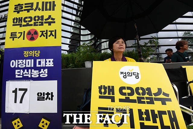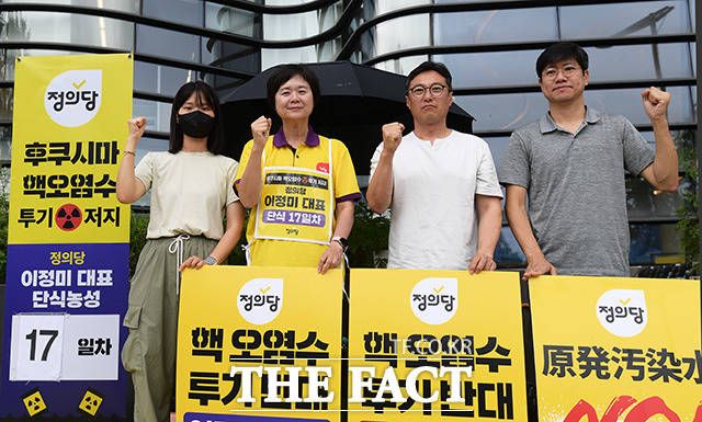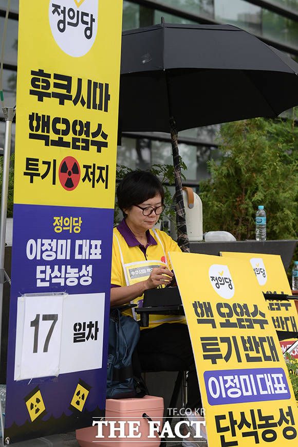 이정미 대표는 지난달 26일 일본 후쿠시마 오염수 방류를 반대하며 일본대사관 앞에서 무기한 단식 농성에 돌입했다.