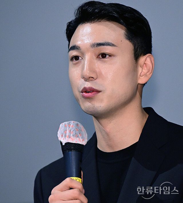 황태환이 12일 오전 서울 용산구 아이파크몰 CGV에서 열린 영화 '아버지의 마음' 언론시사회에 참석해 취재진의 질문에 답하고 있다.