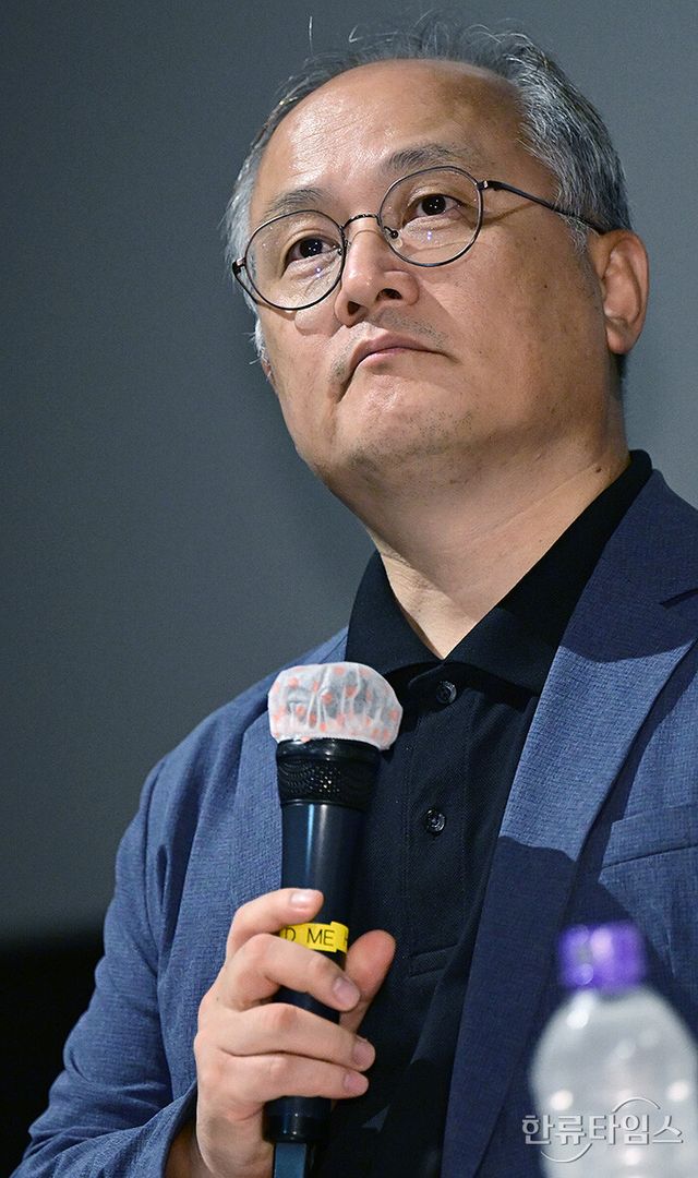 김상철 감독이 12일 오전 서울 용산구 아이파크몰 CGV에서 열린 영화 '아버지의 마음' 언론시사회에 참석해 취재진의 질문에 답하고 있다.