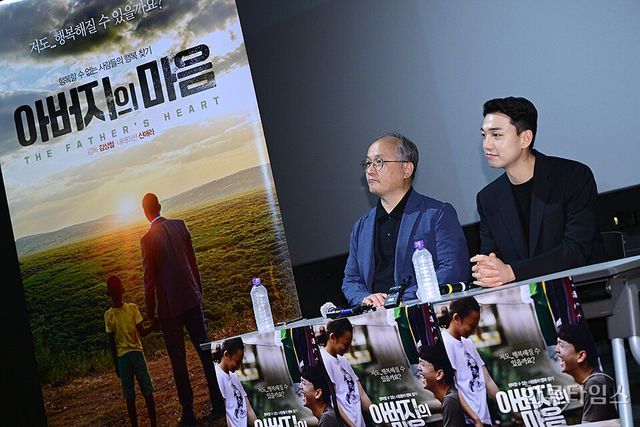 황태환, 김상철 감독이 12일 오전 서울 용산구 아이파크몰 CGV에서 열린 영화 '아버지의 마음' 언론시사회에 참석하고 있다.