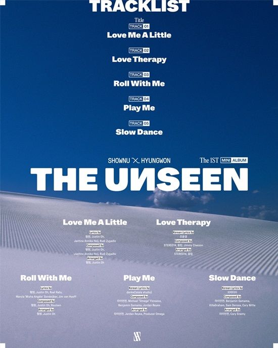 셔누X형원은 지난 12일 몬스타엑스 공식 SNS를 통해 첫 번째 미니앨범 '디 언씬(THE UNSEEN)' 트랙리스트 이미지를 공개했다.