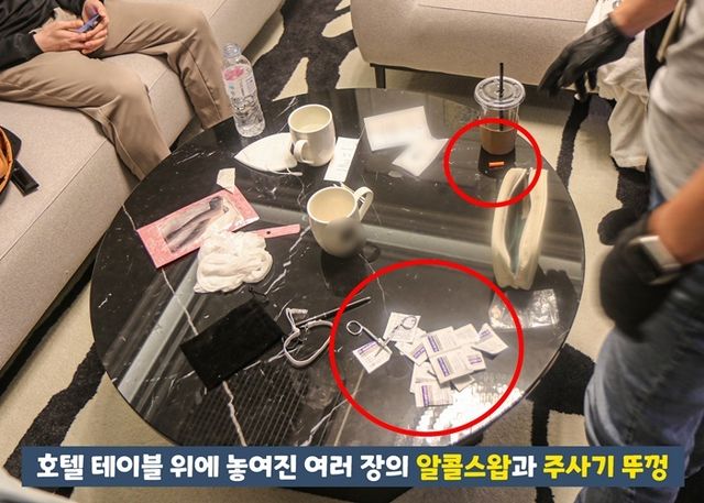 확인 결과 경찰은 객실 내부 테이블에서 흰 가루와 알코올 솜, 주사기 뚜껑 등을 발견했다. 또한 침대 및 소형 금고에서 246명 분량의 필로폰과 주사기를 발견해 이들을 현행범으로 체포했다.